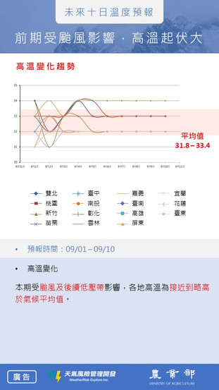 農業氣象112/09/01 海葵持續西進來勢洶洶,最快明天發布海上警報